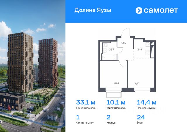 Купить 1-комнатную квартиру возле парка Торфянка в Москве