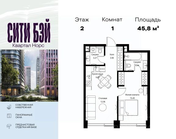 Продаётся 1-комнатная квартира 41 м². В жилом районе Алиа на 21-м этаже 30-этажного дома. Жилой район Алиа — это дома бизнес-класса у слияния Москвы-реки и Сходни. Алиа находится в Покровском-Стрешневе, экологически чистом районе на престижном северо-западе столицы. Район возводится на бывшей территории Тушинского аэрополя, где никогда не было промышленного производства. Алиа — это район разностороннего развития, спроектированный по принципу WORK.LIVE.PLAY.LEARN. Это "15-минутный город", где вся необходимая для комфортной жизни инфраструктура — на расстоянии приятной прогулки. У района удобное расположение: отсюда меньше 10 минут пешком до станций метро "Спартак" и "Тушинская" и всего полчаса на автомобиле до центра города или аэропорта Шереметьево. Архитектурную концепцию Алиа разработало бюро SOM (Skidmore, Owings & Merrill), авторы знаменитой "Бурдж-Халифа". В Алиа больше 140 планировочных решений, среди которых — редкие для Москвы форматы: квартиры с окном в ванной, пентхаус, сити-юниты и таунхаусы. Почти половина территории района отдана под благоустройство. В Алиа три парка: Линейный парк с кафе и магазинами, Центральный парк с амфитеатром, сухим фонтаном и большим плейхабом для детей всех возрастов и Прибрежный парк на собственной набережной, одной из самых длинных в Москве. В каждом урбан-блоке — закрытый внутренний двор с гипоаллергенными растениями и детской площадкой. В лобби каждого жилого корпуса в Алиа оборудована зона ожидания, колясочная, гостевой санузел и лапомойка для домашних животных. За стойкой ресепшена резидентов и их гостей встречает консьерж. Центральное лобби урбан-блока — это стильное общественное пространство с коворкингом, лаундж-зоной и кофе-пойнтом. Это "вторая гостиная" жителей урбан-блока и одно из мест, где формируется комьюнити Алиа. Два ключевых объекта инфраструктуры в Алиа — это спорткомплекс "Чкалов Арена", где представлены 25 видов спорта, и самый большой в стране бизнес-парк класса A, благодаря которому району обеспечено быстрое развитие.