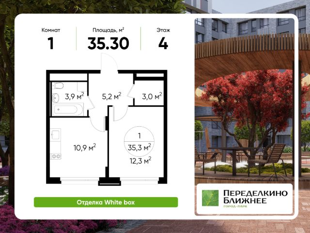 Продается однокомнатная квартира без отделки в 18 фазе города-парка "Переделкино Ближнее". Общая площадь квартиры - 36,1 кв. м, этаж 3 из 17. Срок сдачи - 2 квартал 2027 года. Тип дома - монолитный. Новый корпус состоит из 12 секций c переменной этажностью 8-17 этажей: Все секции с отделкой White Box с возможностью повышения за дополнительную плату до дизайнерской отделки: Classic или Smart+ Город-парк "Переделкино Ближнее" расположен в 8 км от МКАД по Боровскому шоссе. ТРАНСПОРТНАЯ ДОСТУПНОСТЬ: - 10 минут пешком до МЦД-4 "Мичуринец" - 14 минут на машине до станции метро "Филатов Луг" Сокольнической линии - 15 минут пешком до станции метро "Рассказовка" Солнцевской линии - 30 минут до центра Москвы - Прямой выезд на дорогу Солнцево-Бутово-Варшавское шоссе, минуя жилую застройку всего ЖК РАЗВИТАЯ СОЦИАЛЬНАЯ ИНФРАСТРУКТУРА: - 7 детских садов, 3 школы - детская музыкальная школа имени Б.Л. Пастернака - поликлиника для взрослых ГБУЗ ГП 212 ДЗМ филиал 70 - пожарная часть 66. Аварийно-спасательный отряд 6 ГКУ - банки, продуктовые магазины, аптеки, фитнес центры, салоны красоты и пр БЛАГОУСТРОЙСТВО: - дворы без машин - игровые зоны и развивающие детские площадки - детские площадки разделены по возрастным группам - зоны для пассивного отдыха - зоны для занятий спорта ОСОБЕННОСТИ АРХИТЕКТУРЫ: - переменная этажность открывает видовые характеристики на реку Алешинка и на лесопарковую зону - увеличенное остекление в квартирах - высокие потолки от 3,03 м. - безбарьерные входные группы - колясочные в каждой входной группе - кладовые помещения расположены на -1 этаже каждой секции и на 2-17 жилых этажах в секции 11 - коммерческие помещения на 1 этаже в 11 и 12 секциях - в секциях 2-4, 6-7, 11-12 по 2 лифта: 1 пассажирский, 1 грузовой - в секциях 1, 5, 8-10: 1 грузовой лифт - мусоропроводы в домах не предусмотрены, запроектированы специальные зона для сбора мусора - на фасаде предусмотрены корзины для установки кондиционеров. - видеонаблюдение установленное в холлах первых этажей, у подъездов и прилегающей территории АВТОРСКИЙ ДИЗАЙН: Входные группы выполнены по авторскому дизайну, оснащены системой "тёплый пол". В каждой входной группе будет располагаться комфортабельная зона ожидания, почтовые ящики, колясочная, акцентные пуфы и столик.
