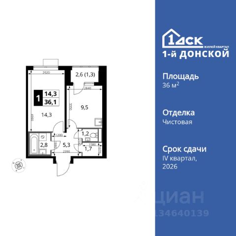 УСПЕЙ ПО СЕМЕЙНОЙ ИПОТЕКЕ БЕЗ НАЦЕНКИ! Квартиры с отделкой от 30 000 рублей в месяц! Прямая продажа от застройщика! Жилой Комплекс класса Комфорт Плюс. Продаётся 1-к квартира номер 498 общей площадью 34.2 кв.м. на 9-м этаже 12 этажного здания. Чистовая отделка. Цена с учётом скидки. Особенности квартиры: - МЦД-5 в пешей доступности - Квартал с собственной набережной - Свои 2 детских сада и школа - Линейная планировка - максимальная функциональность и удобство. - Просторная мягкая зона - комфорт и уют для отдыха всей семьи. - Возможность добавить спальное место - дополнительный комфорт для гостей. - Ниша под шкаф - компактное и удобное место для вещей. - Лоджия - уютное место для отдыха и тишины. Информация о комплексе: Комплекс 1-й Донской расположен в 7 км от МКАД по трассе М-4 Дон. В нем сочетаются все плюсы комфортной городской среды и природного окружения. В проекте достаточно большой процент квартир, выходящих на 2-3 стороны света. Секции-маяки формируют у зданий визуальную L-форму, что придает застройке структуру и ритмику объемов. На ощущение динамики работает и разная этажность зданий. Теплая цветовая палитра фасадов отражает природу Дона. Вечерами дома преображаются благодаря архитектурной подсветке, выгодно выделяясь на городском фоне. Природа оказывает положительное влияние на человека на всех уровнях восприятия: через зрение, запахи, звуки, тактильные ощущения. Неподалеку от ЖК Первый Донской: Ермолинский парк, Видновский лесопарк, Жуковский парк Транспортная доступность: Комплекс удобно расположен в 7 км от МКАД по трассе М-4 Дон (через Видное). Расстояние до Каширского шоссе составляет 12 км. Добраться до метро и центра Москвы позволяет развитая сеть маршрутов общественного наземного транспорта. Действующая ж/д станция Калинина Павелецкого направления в 15-17 минутах ходьбы (МЦД-5 в 2025-2026 гг). Внутренняя инфраструктура: Проект 1-й Донской соседствует с бурно развивающимся районом, основная инфраструктура которого уже сложилась. В строительстве современных жилых комплексов в округе есть свои плюсы: здесь формируется продуманная и комфортная городская среда. Что касается внутренней инфраструктуры, на территории квартала будут расположены собственные муниципальные 2 детских садика и школа, которые помогут совместить приятное с полезным. Территория комплекса пронизана целой сетью живописных пешеходных маршрутов, позволяющих попасть в любой уголок района. Основные пути, как водится, "торговые". Они проходят вдоль магазинов, кафе и других представителей коммерции и отделяются от проезжей части зеленой "фито" - стеной. Среди крупных социальных объектов предусмотрены своя поликлиника и торговый центр с примыкающей площадью для общественных мероприятий. Уют начинается с продуманного подъезда. Сквозные подъезды наполнены светом благодаря сплошному остеклению. Вход в них есть и с улицы, и со двора.