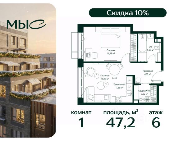 Прямая продажа от застройщика. Продаётся 1-комнатная квартира общей площадью 37.63 м² без отделки в премиальном жилом комплексе "МЫС" на 6-м этаже 12 этажного дома. Квартира расположена в корпусе "Сибирь". Проект МЫС — это, прежде всего, идеальное место для семей. В рамках проекта построят государственную школу, два детских сада и дворец спорта площадью 20 000 м2 с термальным комплексом, выплывным бассейном, фитнес-залом, теннисными, сквош и падел кортами и секциями для детей. На территории площадью, сравнимой с тремя парками Зарядье, появятся кафе и рестораны, пруд с набережной, спортивные и детские площадки, скейт-парк, лыжные и веломаршруты. Расположение: - 2 минуты до скоростной трассы М1 и Минского шоссе; - 10 минут до МКАД; - 15 минут до МЦД Лесной Городок - 20 минут до делового центра "Москва-Сити"; - 28 минут до аэропорта "Внуково". Благоустройство: - велосипедные и лыжные маршруты; - собственная набережная и парк; - лаунж-зоны в окружении природы; - беседки у очага; - дворец спорта площадью 20 000 м²; - термальный комплекс с тремя бассейнами; - 4 теннисных и падел-корта; - 6 сквош-кортов; - многофункциональный спортзал; - скейт-парк; - просторная площадь для прогулок с фонтаном; - детский клуб с творческими секциями; - гастро-доминанта; - кафе у пруда, рестораны, ритейл. Окружение - соседство с лесным фондом; - школа на 1250 мест и 2 детских сада на 350 и 255 мест; - Дубковский и Подушкинский леса, парк "Рассказовка", Мещерский парк. Действуют специальные условия при 100% оплате, подробности уточняйте у менеджера в офисе продаж.
