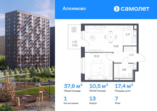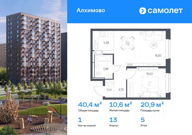 Строим кварталы для жизни с заботой о будущем. Предлагается 1-комнатная квартира комфорт-класса 36 кв.м в корпусе 13 на 5 этаже, в ЖК "Алхимово" Квартира с чистовой отделкой. Доступность дополнительных опций уточняйте у застройщика. Приобрести квартиру возможно по специальным акциям от застройщика, с текущими условиями акций можно ознакомиться в блоке "Акций". Цена динамическая и может отличаться, уточняйте актуальность у застройщика. "Алхимово" — жилой комплекс в Новой Москве, в 16 км от МКАД. Рядом — живописный Дубровицкий лесопарк и река Десна. На территории уже есть свои школа и детский сад, ведется строительство еще одного детского сада. Супермаркеты, аптеки и кафе — в паре шагов от дома. В будущем появится свой торговый центр. В квартале есть воркаут-зона, игровые площадки, отдельная площадка для выгула собак. Дворы закрыты от машин, для автомобилистов предусмотрен многоуровневый паркинг. В проекте — монолитные дома высотой от 8 до 16 этажей. Фасады облицованы декоративным кирпичом естественных оттенков.