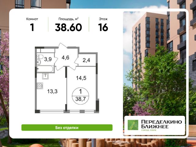 Продается однокомнатная квартира без отделки в 18 фазе города-парка "Переделкино Ближнее". Общая площадь квартиры - 41,4 кв. м, этаж 11 из 17. Срок сдачи - 2 квартал 2027 года. Тип дома - монолитный. ТОЛЬКО ДО 28 ФЕВРАЛЯ: - Рассрочка до 13 месяцев с первоначальным взносом от 10% - Ежемесячный платеж от 50 000 руб. *подробную информацию по скидкам и акциям уточняйте в отделе продаж. Корпус состоит из 12 секций c переменной этажностью 8-17 этажей. Город-парк "Переделкино Ближнее" расположен в 8 км от МКАД по Боровскому шоссе. ТРАНСПОРТНАЯ ДОСТУПНОСТЬ: - 10 минут пешком до МЦД-4 "Мичуринец" - 14 минут на машине до станции метро "Филатов Луг" Сокольнической линии - 15 минут пешком до станции метро "Рассказовка" Солнцевской линии - 30 минут до центра Москвы - Прямой выезд на дорогу Солнцево-Бутово-Варшавское шоссе, минуя жилую застройку всего ЖК РАЗВИТАЯ СОЦИАЛЬНАЯ ИНФРАСТРУКТУРА: - 7 детских садов, 3 школы - детская музыкальная школа имени Б.Л. Пастернака - поликлиника для взрослых ГБУЗ ГП 212 ДЗМ филиал 70 - пожарная часть 66. Аварийно-спасательный отряд 6 ГКУ - банки, продуктовые магазины, аптеки, фитнес центры, салоны красоты и пр БЛАГОУСТРОЙСТВО: - дворы без машин - игровые зоны и развивающие детские площадки - детские площадки разделены по возрастным группам - зоны для пассивного отдыха - зоны для занятий спорта ОСОБЕННОСТИ АРХИТЕКТУРЫ: - переменная этажность открывает видовые характеристики на реку Алешинка и на лесопарковую зону - увеличенное остекление в квартирах - высокие потолки от 3,03 м. - безбарьерные входные группы - колясочные в каждой входной группе - кладовые помещения расположены на -1 этаже каждой секции и на 2-17 жилых этажах в секции 11 - коммерческие помещения на 1 этаже в 11 и 12 секциях - в секциях 2-4, 6-7, 11-12 по 2 лифта: 1 пассажирский, 1 грузовой - в секциях 1, 5, 8-10: 1 грузовой лифт - мусоропроводы в домах не предусмотрены, запроектированы специальные зона для сбора мусора - на фасаде предусмотрены корзины для установки кондиционеров. - видеонаблюдение установленное в холлах первых этажей, у подъездов и прилегающей территории АВТОРСКИЙ ДИЗАЙН: Входные группы выполнены по авторскому дизайну, оснащены системой "тёплый пол". В каждой входной группе будет располагаться комфортабельная зона ожидания, почтовые ящики, колясочная, акцентные пуфы и столик.