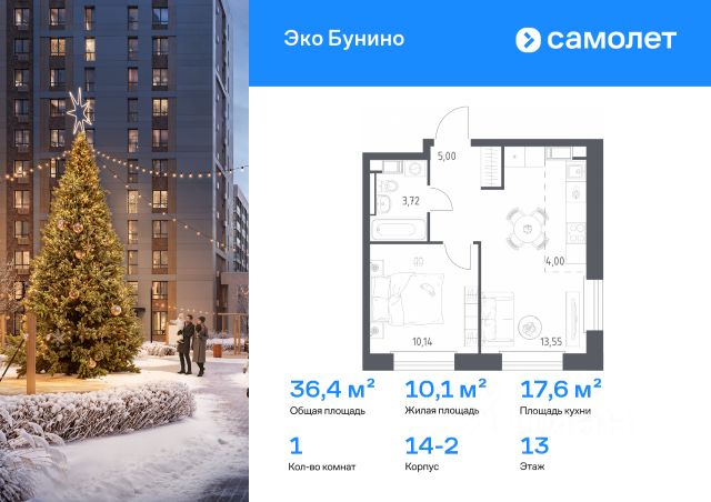 Строим кварталы для жизни с заботой о будущем. Предлагается 1-комнатная квартира комфорт-класса 36,41 кв.м в корпусе 14-2 на 13 этаже, в ЖК "Эко Бунино" Квартира без отделки. Доступность опции "отделка" и возможность комплектации мебелью и декором уточняйте у застройщика. Приобрести квартиру возможно по специальным акциям от застройщика, с текущими условиями акций можно ознакомиться в блоке "Акций". Цена динамическая и может отличаться, уточняйте актуальность у застройщика. "Эко Бунино" — жилой комплекс в Новой Москве, полностью готовый для жизни. Уже построены школа и детские сады, открыты ледовая арена и магазины. Рядом — 2 станции метро и 3 лесопарка для прогулок. До станции метро "Новомосковская" — 20 минут пешком по экотропе. Во дворах-парках, закрытых от машин, комфортно и безопасно гулять. Здесь высажены уже взрослые деревья, которые создают прохладную тень в жаркий день. Ребенок любого возраста найдет увлекательное занятие в уже готовом плейхабе с большой горкой в виде слона и уникальным игровым оборудованием. Пока дети играют, родители могут прогуляться по бульвару или отдохнуть под навесом из растений. "Эко Бунино" — это 19 монолитных домов переменной этажности. Для облицовки используется навесной вентилируемый фасад и клинкерная плитка, которая имитирует кирпич. Переменная этажность обеспечивает хорошую инсоляцию дворов: в солнечные дни на территории особенно приятно гулять.