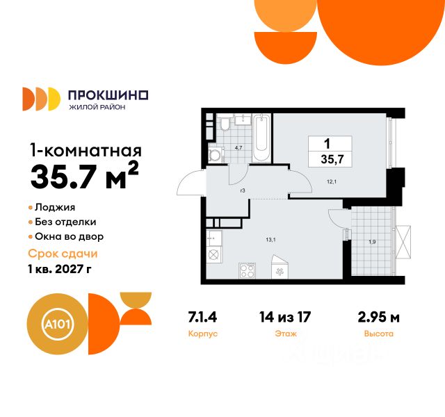 Продается однокомнатная квартира без отделки в 9 фазе города-парка "Первый Московский". Общая площадь квартиры - 37,6 кв. м, этаж 5 из 19. Срок сдачи - 4 квартал 2026 года. Тип дома - монолитный. ТОЛЬКО ДО 28 ФЕВРАЛЯ: • Рассрочка до 13 месяцев с первоначальным взносом от 10% • Ежемесячный платеж от 50 000 руб. *подробную информацию по скидкам и акциям уточняйте в отделе продаж. Корпус состоит из 2х секций, без отделки. Город-парк "Первый Московский" расположен всего в 7 км по Киевскому шоссе от МКАД на территории Новой Москвы. Из города-парка прямой выезд на Киевское шоссе и трассу Солнцево-Бутово-Варшавское шоссе. ТРАНСПОРТНАЯ ДОСТУПНОСТЬ: - 5 мин. на личном автомобиле или 10 мин. на автобусе 189, 147, 193 до станции метро "Филатов Луг" - 5 мин. на личном автомобиле или 12 мин. на автобусе 863 до станции метро "Саларьево" - 6 мин. на личном автомобиле или 15 мин. на автобусе 333 до станции метро "Рассказовка" РАЗВИТАЯ ИНФРАСТРУКТУРА В ОКРУЖЕНИИ: - общеобразовательная школа 2120 корпуса д1, д7, ш1-ш5 - детский сад 2120 корпуса д2, д9 - школа искусств - городская больница, детская поликлиника, филиал 5 - подстанция скорой помощи 58 и пожарно-спасательный центр 313 - отдел полиции, отдел ГИБДД - торговые центры Столица и Новомосковский - стадион, каток, бассейн - кафе, продуктовые магазины, аптеки, фитнес центры, салоны красоты и пр. БЛАГОУСТРОЙСТВО: - детская площадка для малышей и детей до 12 лет - места отдыха для родителей в непосредственной близости - озеленение территории с учетом зонирования - максимальная близость корпуса к пару Филатов луг ОСОБЕННОСТИ АРХИТЕКТУРЫ: - безбарьерные входные группы - колясочные в каждой входной группе - коммерческие помещения на 1 этаже в двух секциях - кладовые помещения расположены на жилых этажах и на -1 этаже - в каждой секции корпуса по 3 лифта: 2 пассажирских, 1 грузовой - на фасадах предусмотрены корзины для установки внешних блоков кондиционеров - видеонаблюдение установленное в холлах первых этажей, у подъездов и прилегающей территории АВТОРСКИЙ ДИЗАЙН: Входные группы выполнены по авторскому дизайну, оснащены системой "тёплый пол". В каждой входной группе будет располагаться комфортабельная зона ожидания, почтовые ящики с ячейкой для спама, колясочная, акцентные пуфы и столик.