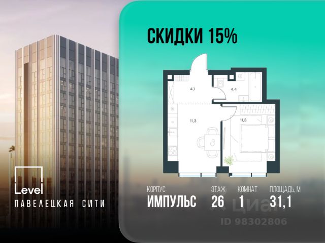 В Даниловском районе столицы (ЮАО) продаётся 1-комнатная квартира площадью 31.10 кв.м без отделки. Квартира расположена на 10 этаже 45-этажного корпуса 'Горизонт' в жилом комплексе бизнес-класса Павелецкая Сити. Высота потолков 3.00м. Престижная локация "Павелецкая Сити" - жилой комплекс бизнес-класса, расположенный в престижном Даниловском районе Москвы, на границе с ЦАО. Проект находится в историческом центре города в окружении парков, Москвы-реки и сформированной инфраструктуры. В пределах 20 минут пешком есть 3 станции метро, а в 5 минутах езды на авто - ТТК и Садовое кольцо. - 15 мин. пешком до метро "Павелецкая"; - 20 мин. пешком до станций "Тульская" и "Серпуховская"; - 8 мин. на авто до Кремля; - 10 мин. на авто до парка Горького и парка "Зарядье"; - 20 мин. на авто до башен "Москва-Сити". Авторская архитектура Архитектурная концепция разработана бюро СПИЧ по индивидуальному проекту. Облик корпусов I и II очередей отсылает к стилистике архитектуры классического Нью-Йорка и золотой эпохи Голливуда. Корпуса IV очереди вдохновлён эстетикой ар-деко в её современном переосмыслении. Благодаря линейному расположению корпусов из большинства квартир будут открываться потрясающие виды на исторический центр города и Москву-реку. Дизайнерские лобби Изысканные интерьеры лобби жилого комплекса отсылают к классическим фильмам золотой эпохи Голливуда. Классика в "Павелецкая Сити" - не имитация, а современное осмысление лучшего в этом стиле. В каждом вестибюле оборудованы стойки ресепшен, комфортные зоны ожидания, гостевые санузлы, мойки для лап животных, колясочные. В корпусах по 3-4 лифта, включая сервисный, с прямым доступом в паркинг. Площадь лобби - от 47,9 до 114,9 кв. м, высота потолков - до 5,46 м. Благоустройство и инфраструктура Для создания благоустройства было приглашено 2 ведущих бюро - ADM и GAFA. Разноуровневое пространство вмещает всё необходимое для качественного досуга: игровые площадки для детей всех возрастов, тропы здоровья для пеших прогулок, крытые аллеи с качелями, места для работы на свежем воздухе, многофункциональные спортивные площадки - воркаут-зоны, столы для пинг-понга, зоны командных игр. Общая площадь закрытого двора - 4,63 га. Комфорт - это когда рядом всё, что нужно для жизни. На первых этажах и в стилобатной части корпусов "Павелецкая Сити" размещены 85 коммерческих помещений, где откроются супермаркеты, кафе, пекарни, аптеки и другие службы сервиса. В составе проекта также предусмотрены собственный фитнес-клуб и развивающий центр Letovo Kids, а также школа на 720 мест и детский сад на 175 мест. Технологии и безопасность - Wi-Fi в лобби и на придомовой территории; - Автоматизированная система контроля и учета ресурсов; - Круглосуточное видеонаблюдение и охрана; - Круглосуточная связь с охраной через приложение, телефон или кол-центр; - Контроль доступа по биометрической системе Face-ID; - Усиленный сотовый сигнал в лифтах и паркинге; - Распознавание номеров автомобилей при въезде/выезде в/из паркинга.