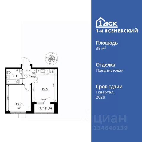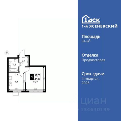Прямая продажа от застройщика! Жилой Комплекс класса Комфорт Плюс. Продаётся 1-к квартира номер 816 общей площадью 38.3 кв.м. на 3-м этаже 5 этажного здания. Предчистовая отделка. Цена с учётом скидки. Особенности квартиры: - Квартиры рядом с метро - м. Корниловская 9 мин пешком - 63 га лесопарка за окнами - Школа c ИТ-кластером и бассейном. 2 детских сада - Организуем показ в удобное для вас время! - Мастер-зона с гардеробной. Просторное место для отдыха и удобного хранения вещей. - Просторная спальня, в которой можно разместить большую кровать. - Линейная планировка - максимальная функциональность и удобство. - Можно оборудовать рабочее место - комфорт для работы и учёбы. - Линейная кухня - функциональность и практичность в одном решении. - Гардеробная - удобство для хранения и организации вещей. - Ниша под шкаф - компактное и удобное место для вещей. - Балкон - открытое пространство для отдыха. - Панорамное остекление балкона - наслаждайтесь видами из вашего балкона. Квартира с предчистовой отделкой. Вам не придется заниматься черновыми и трудоёмкими работы, а чистовую отделку и дизайн - сделайте на свой вкус. Информация о комплексе: ЖК "1-й Ясеневский": преимущества городской инфраструктуры и природы. Пешая доступность к метро, школе с бассейном и ИТ-кластеру, а также 63 га Троицкого лесопарка под окнами. Закрытая территория с бульварами, велодорожками, кафе и дворами без машин. Фруктовые деревья и городские сады создают уникальную атмосферу. Всего в 1 км от МКАД - идеальный баланс для современной жизни. Транспортная доступность: До метро "Корниловская" - 12 минут пешком До метро "Тютчевская" - 25 минут пешком До метро "Теплый стан" - 10 минут на транспорте До метро "Ольховая" - 30 минут на общественном транспорте Личный автотранспорт: Выезд на Калужское шоссе - 500 м МКАД - 1 км Внутренняя инфраструктура: ЖК "1-й Ясеневский" - идеальное место для семей с детьми. Рядом Троицкий лесопарк для прогулок, а во дворах - современные детские площадки, разработанные с участием психологов. В шаговой доступности два детских сада и школа на 1100 мест с ИТ-кластером, бассейном и классами робототехники. Всё для счастливого детства и успешного будущего. Квартира с предчистовой отделкой - ваш дизайн без черновых работ