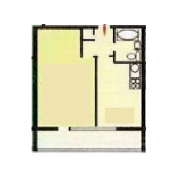 Жилая площадь 21 м². Можно легко разделить на две комнаты стеклянной перегородкой. На кухне раскладное кресло-кровать ИКЕА. Коридор длинный, и на перспективу можно сделать большой современный распашной встроенный шкаф буквой Г.