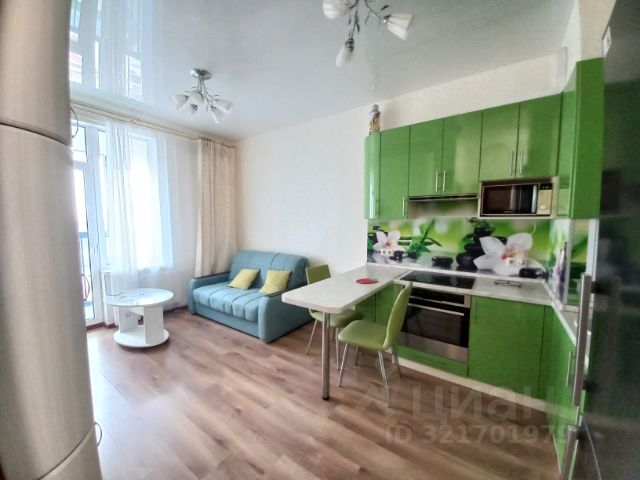 Полностью укомплектована мебелью и бытовой техникой (двуспальная кровать с ортопедическим матрасом, раскладной двуспальный диван, кондиционер, шкаф-купе, мебельная стенка для хранения, кухонный гарнитур, варочная панель и дух.шкаф, микроволновая печь, холодильник, стиральная машина и т.д.).