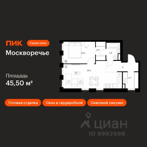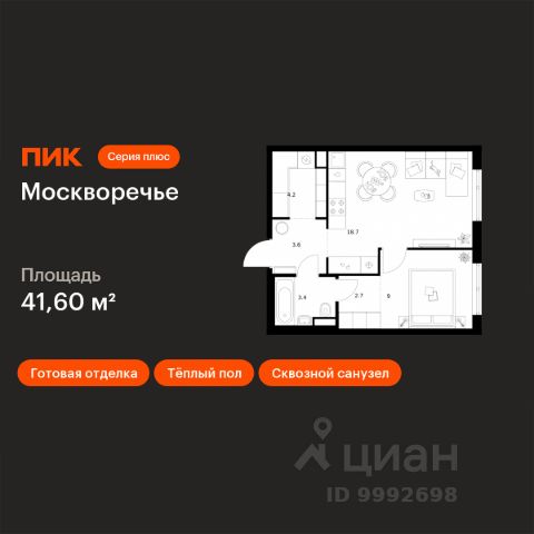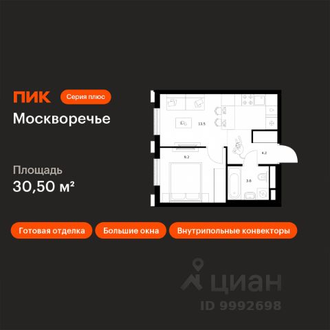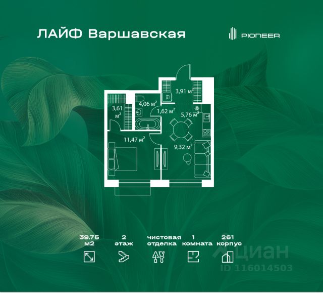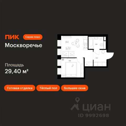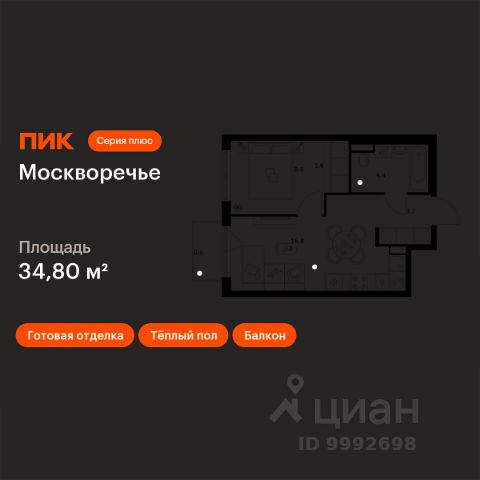 В районе Москворечье-Сабурово продается 1-комнатная квартира площадью 43.41 м². Она расположена на 13 этаже в 261 корпусе нового жилого квартала Лайф Варшавская. Площадь комнат: гостиная — 11,93 м² спальня — 12,66 м² кухня — 5,84 м² ванная — 4,06 м² В Лайф Варшавская мы создали идеальные условия для жизни молодых людей и семей с детьми, тинейджеров и спортсменов, домохозяек и бизнесменов. Жилой квартал Лайф Варшавская удачно расположен: 5 минут до станции "Варшавская" 10 минут до станции "Каширская" 18-25 минут до парка-усадьбы "Коломенское", Битцевского леса и музея-заповедника "Царицыно" Богатая инфраструктура — это визитная карточка проекта. На территории работают детский сад на 160 мест и школа на 900 мест с IT-полигоном и мультифункциональным спортивным стадионом. В квартале разместились пешеходный бульвар, игровой плейхаб "Змейка", спортивный кластер с полями для футбола и волейбола, площадка для выгула животных. На первых этажах жилых домов открыты магазины, кафе и рестораны, салоны красоты, арт-галереи, сервисы бытовых услуг, медицинские центры. Концепция жилого квартала создана ведущими архитектурными бюро. Структуры малоэтажных кварталов дополняются высотными башнями-доминантами. Такой тип застройки позволил сформировать освещенную приватную территорию.