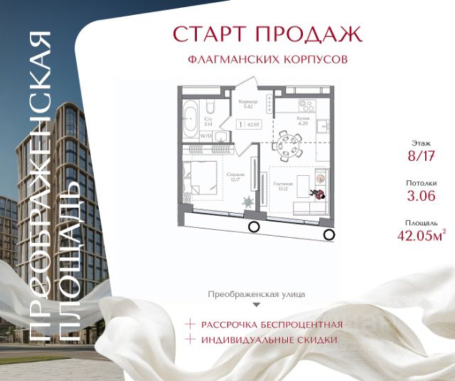 Жилой комплекс "Преображенская площадь" Премиум-класс | старт продаж долгожданных корпусов Открыт старт продаж нового объёма квартир в жилом комплексе "Преображенская площадь". В реализации — долгожданные корпуса проекта, а значит сейчас доступен лучший выбор планировок и наиболее привлекательные условия покупки. Комплекс расположен на первой линии от метро "Преображенская площадь" в историческом районе с развитой инфраструктурой. Удобный выезд позволяет добраться до ТТК всего за 7 минут, до Садового кольца — за 8 минут. Архитектура проекта продумана так, чтобы сохранить ощущение приватности: на каждом этаже расположено всего 35 квартир. Небольшое количество соседей создаёт комфортную, спокойную атмосферу проживания. Входные группы выполнены в формате гранд-лобби с камином, библиотекой и лаунж-зонами. В отделке используются натуральные материалы, формирующие стильное и статусное пространство. Закрытая территория площадью 1,5 га полностью свободна от автомобилей. Пространство двора организовано как ландшафтный парк с прогулочными маршрутами, зонами отдыха и спорта, а также гастропроменадом с кафе и ресторанами. Предусмотрен подземный паркинг с прямым доступом в жилые корпуса. В составе проекта — детский сад и IT-школа 1502 "Энергия", входящая в число лучших школ Москвы и России. Комплекс окружён крупными зелёными зонами: рядом расположены Сокольники, Измайловский и Черкизовский парки, национальный парк "Лосиный остров", ВДНХ и благоустроенная набережная Яузы. Доступна рассрочка 0% при первоначальном взносе от 20%. Старт продаж новых корпусов — возможность приобрести квартиру в премиальном проекте на самых выгодных условиях. Звоните для подробной консультации.