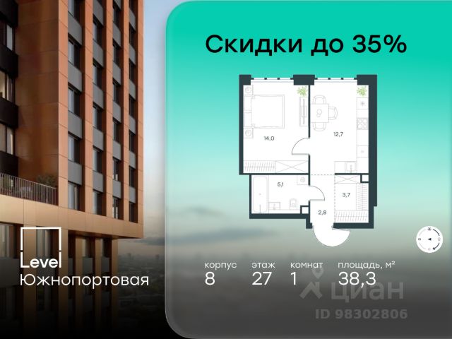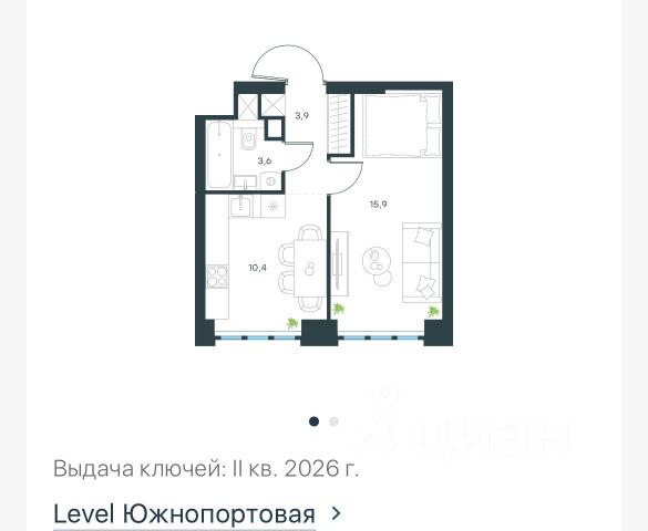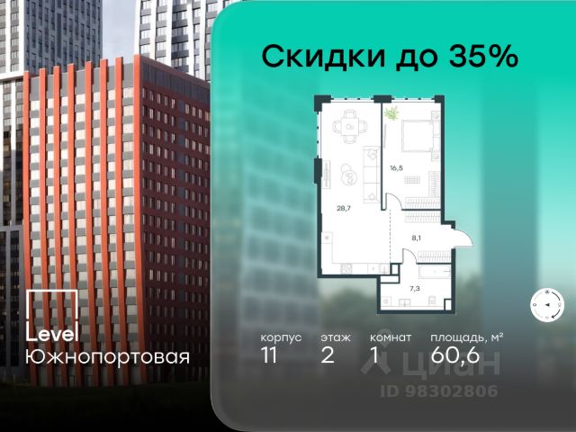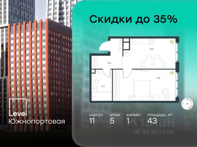 Цена указана с учётом скидки при 100%-й оплате, несубсидированной ипотеке, рассрочке (кроме программы "Рассрочка 0%"). В северной части района Печатники продается 1-комнатная квартира площадью 33.90 кв.м без отделки. Квартира расположена на 5 этаже 16-этажного корпуса 11 в жилом комплексе комфорт-класса Level Южнопортовая (компания Level Group/Левел групп). Отличная транспортная доступность: - 10 мин. пешком до станции метро "Кожуховская"; - 20 мин. пешком до станции МЦК "Дубровка"; - 3 мин. на авто до ТТК; - 13 мин. на авто до Садового кольца; - 15 мин. на авто до Бульварного кольца. Продуманный архитектурный проект: - авторская архитектура от бюро СПИЧ; - уникальные виды на реку, парки и достопримечательности города; - высота потолков в квартирах до 6 м; - окна высотой до 1,87 м с высоким коэффициентом сопротивления теплоотдаче. Расположение: Level Южнопортовая строится в северной части района Печатники - самой приближенной к центру. Здесь будет сформирован новый район "Южный порт", где построят крупный жилой и общественно-деловой центр, аналогичный Москва-Сити. В течение 10-12 лет в этом месте появятся не только жилые дома, но и развитая инфраструктура для жизни и работы. А еще совсем рядом находится набережная Москвы-реки, где планируется построить причалы для речных трамвайчиков и канатную дорогу. Уже сейчас вокруг жилого комплекса работают десятки магазинов и торговых центров, рядом расположено 6 парков, среди которых музей-заповедник "Коломенское". В 10 минутах пешком - 2 муниципальных и 2 частных детских сада, 7 общеобразовательных школ. Внутренняя инфраструктура: Для отдыха жителей в каждом корпусе предусмотрено лобби, оснащенное местами для отдыха, гостевыми санузлами и лапомойками, а в отдельных корпусах - камином. За счёт больших окон и высоких потолков пространства будут наполнены воздухом и светом. На первых этажах жилого комплекса откроются магазины, салоны красоты, фитнес-центр. Для детей строятся собственные детский сад и школа. Благоустройство: Внутренний двор комплекса разработан совместно с бюро GAFA. Основная идея - создать аналог Центрального парка в Нью-Йорке, гармонично сочетая высотные здания и большое изолированное парковое пространство. Вся площадь двора-парка будет огорожена и составит более 2 га, из которых 45% - озеленение. Одним из самых важных ландшафтных элементов здесь станет небольшая речка, наполняющаяся во время дождя. Вокруг неё появится сеть из островов, внутри которых расположатся тематические зоны спорта и отдыха. Технологии и инженерия: - автоматическая передача в управляющую компанию показаний квартирных счётчиков; - телефонная связь, телевидение и интернет на базе оптической мультисервисной сети; - гостевой Wi-Fi в лобби и на территории двора; - единый ключ доступа для входа на территорию комплекса.
