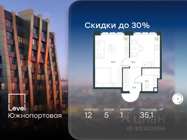 Цена указана с учётом скидки при 100%-й оплате, несубсидированной ипотеке, рассрочке (кроме программы "Рассрочка 0%"). В северной части района Печатники продается 1-комнатная квартира площадью 38.50 кв.м без отделки. Квартира расположена на 22 этаже 49-этажного корпуса 8 в жилом комплексе комфорт-класса Level Южнопортовая (компания Level Group/Левел групп). Отличная транспортная доступность: - 10 мин. пешком до станции метро "Кожуховская"; - 20 мин. пешком до станции МЦК "Дубровка"; - 3 мин. на авто до ТТК; - 13 мин. на авто до Садового кольца; - 15 мин. на авто до Бульварного кольца. Продуманный архитектурный проект: - авторская архитектура от бюро СПИЧ; - уникальные виды на реку, парки и достопримечательности города; - высота потолков в квартирах до 6 м; - окна высотой до 1,87 м с высоким коэффициентом сопротивления теплоотдаче. Расположение: Level Южнопортовая строится в северной части района Печатники - самой приближенной к центру. Здесь будет сформирован новый район "Южный порт", где построят крупный жилой и общественно-деловой центр, аналогичный Москва-Сити. В течение 10-12 лет в этом месте появятся не только жилые дома, но и развитая инфраструктура для жизни и работы. А еще совсем рядом находится набережная Москвы-реки, где планируется построить причалы для речных трамвайчиков и канатную дорогу. Уже сейчас вокруг жилого комплекса работают десятки магазинов и торговых центров, рядом расположено 6 парков, среди которых музей-заповедник "Коломенское". В 10 минутах пешком - 2 муниципальных и 2 частных детских сада, 7 общеобразовательных школ. Внутренняя инфраструктура: Для отдыха жителей в каждом корпусе предусмотрено лобби, оснащенное местами для отдыха, гостевыми санузлами и лапомойками, а в отдельных корпусах - камином. За счёт больших окон и высоких потолков пространства будут наполнены воздухом и светом. На первых этажах жилого комплекса откроются магазины, салоны красоты, фитнес-центр. Для детей строятся собственные детский сад и школа. Благоустройство: Внутренний двор комплекса разработан совместно с бюро GAFA. Основная идея - создать аналог Центрального парка в Нью-Йорке, гармонично сочетая высотные здания и большое изолированное парковое пространство. Вся площадь двора-парка будет огорожена и составит более 2 га, из которых 45% - озеленение. Одним из самых важных ландшафтных элементов здесь станет небольшая речка, наполняющаяся во время дождя. Вокруг неё появится сеть из островов, внутри которых расположатся тематические зоны спорта и отдыха. Технологии и инженерия: - автоматическая передача в управляющую компанию показаний квартирных счётчиков; - телефонная связь, телевидение и интернет на базе оптической мультисервисной сети; - гостевой Wi-Fi в лобби и на территории двора; - единый ключ доступа для входа на территорию комплекса.