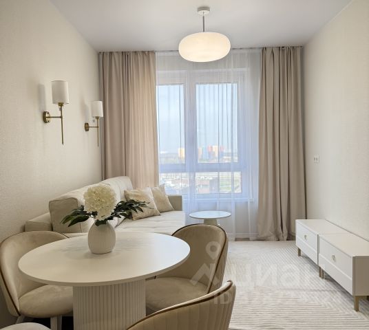 Угловая евротрёшка с кухней-гостиной 30 кв.м и с островом. В квартире две спальни и два санузла, в одном из них постирочная. Одна спальня выходит во двор, на юг, остальные комнаты — на север.