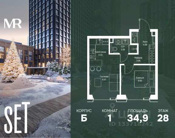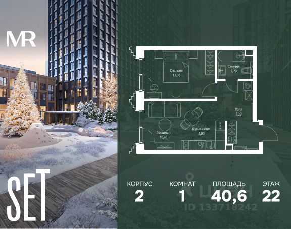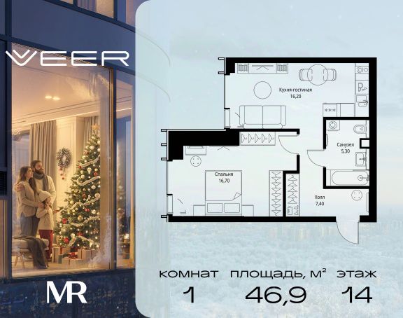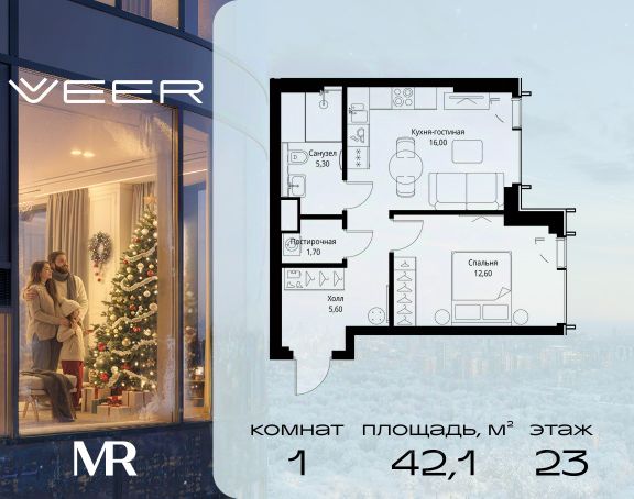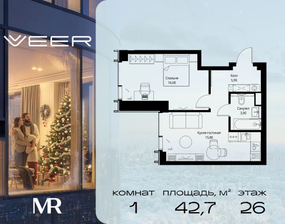Прямая продажа от застройщика. Продаётся 1-комнатная квартира общей площадью 44.20 м² без отделки в ЖК VEER на 40-м этаже 59 этажного дома. Жилой комплекс бизнес-класса VEER от компании MR — это футуристичный мультиквартал, расположенный в престижной локации на западе Москвы. Благодаря переменной высоте башен — двух 22-этажных, 46-этажной и двух 59-этажных — возникает динамичность в силуэте комплекса, а его яркий образ вносит разноплановость в архитектурный пейзаж района. Расположение и транспортная доступность: • VEER удобно расположен в непосредственной близости от Кутузовского проспекта, обеспечивая быстрый доступ к центральным районам Москвы • Комплекс находится непосредственно напротив самого большого природного заказника в Москве - парка "Долина реки Сетунь", а за семь минут можно доехать до памятника садово-паркового искусства, Троекуровского леса. • Всего в 15 минутах - центр города, самая престижная бизнес-школа управления России "Сколково", дом творчества "Переделкино". • 18 минут пешком до м. "Давыдково" • Открытие новых станций метро в шаговой доступности в будущем Инфраструктура: Разнообразить свой день резиденты VEER смогут также проводя больше времени на свежем воздухе. Двор разделен на 4 зоны разных эмоций и действий, которые пересечены и соединены веерными прогулочными маршрутами: • Спортивная площадка устроена в глубине "Кленовой рощи" • В "Чайном домике" будет создан навес с утеплением для отдыха в любую погоду • Площадки для детей воплотятся в "Волшебный лес" с цветами, зеркалами и световым дизайном • "Центральная площадь" устроена у водного оазиса живописного пруда. Компания MR предлагает своим клиентам специальные условия приобретения квартир в рамках программ ипотечного кредитования от банков-партнеров.