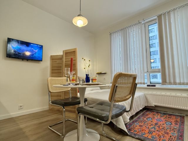 Квартира располагается на Знаменской улице, дом 38к1. Общая площадь квартиры составляет 35,3 квадратных метров, из которых жилая площадь занимает 19.3 квадратных метра, а кухня - 7.7 квадратных метров. Квартира расположена на 8 этаже 12-этажного панельного дома, построенного в 1972 году. Дом находится в хорошем состоянии, совсем не давно был проведен ремонт, оборудован пассажирским и грузовым лифтами, а также мусоропроводом. Возле дома есть наземная парковка, поэтому, в отличии от "человейников", можно без проблем оставить машину рядом с домом. Большие окна выходят на юго-западную сторону, что обеспечивает наполнение пространства естественным светом в течении всего дня - здесь всегда светло, уютно и солнечно, утром и вечером.