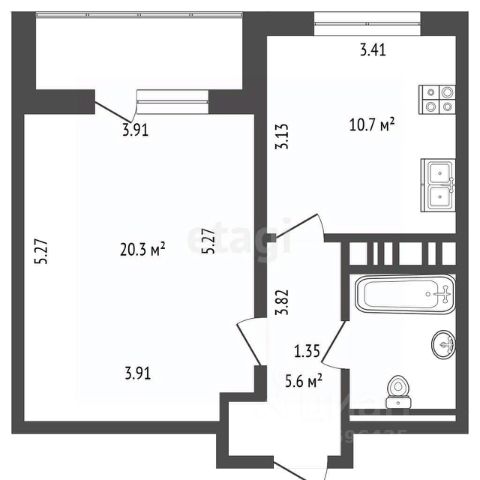 О КВАРТИРЕ: общая площадь 33,5 кв.м (без учета балкона - согласно выписке из ЕГРН), планировка: комната 18,6 кв.м., кухня 6 кв.м., балкон остеклен (выход из комнаты), раздельный санузел;