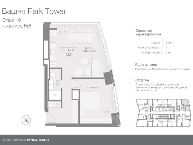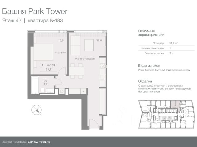 Высота потолков — 3,1 м, панорамные окна, премиальные материалы отделки в местах общего пользования.