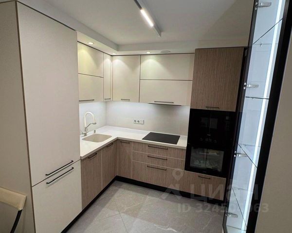 Всего в 4 минутах пешком от метро "Аминьевская". Общая площадь квартиры составляет 43.8 кв. м, жилая площадь — 25 кв. м, а просторная кухня занимает 14 м2.