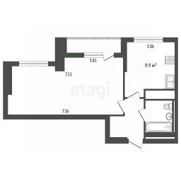 Практичная планировка квартиры удобна для проживания: просторная кухня-гостиная 21,6 м² позволяет установить дополнительное место для отдыха и использовать квартиру как евро 2-комнатную. Изолированная жилая спальня 15,1 м², коридор 7,8 м² и санузел 5,4 м².