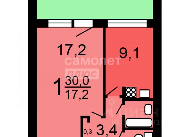 Общая площадь 34,6 м2.