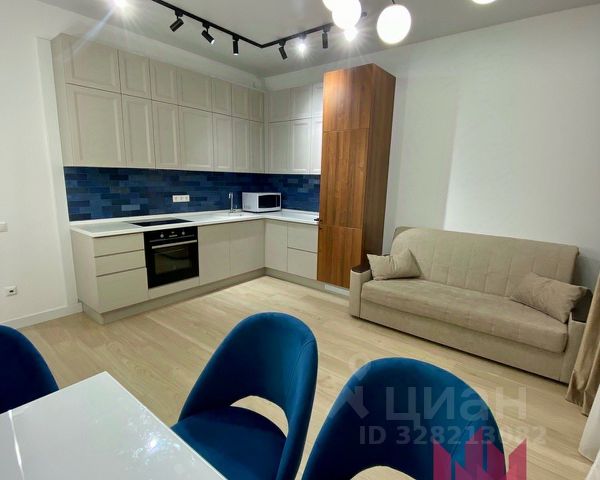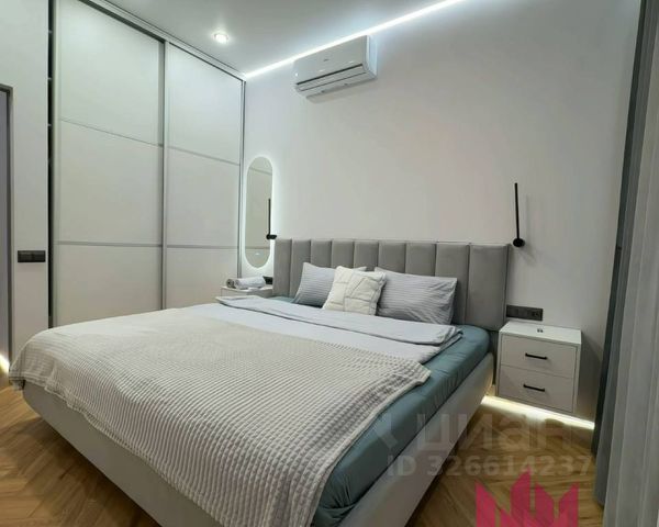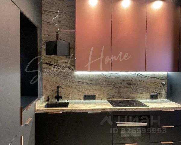 Большие окна и высокий уровень естественного освещения. Сплит система с двумя внутренними блоками. Теплый пол, система защиты от протечек, много декоративной подсветки, нагреватель воды, для удобства 2 душевые системы с тропическим и боковым, подоконники и стол из натурального камня, встроенный шкаф в прихожей, гардеробная комната, стиральная машина и сушильная, вся мебель выполнена на заказ, встроена по размерам. Кухня оборудована высококачественной техникой: варочной поверхностью, духовым шкафом, посудомоечной машиной, вытяжкой и холодильником.
