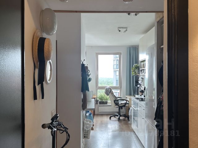 Просторная студия с двумя окнами. Проект планировки заказывался у архитектурного бюро Элис, эффективно используется каждый сантиметр, при том нет унылых длинных и темных комнат-коридоров, которыми грешат новостройки. Комната смотрится как просторное, полное воздуха и света помещение, по ощущению просторней советских однушек. Пространство зонировано, поэтому не придется готовить напротив кровати, при желании можно установить перегородку, получится однушка. Квартира с хорошей энергетикой, счастливо жили здесь с создания нашей семьи, очень удобно встают два рабочих места в разных концах комнаты. Квартира видовая невероятные виды на лес встречают от входа и круглый год, в любую погоду поднимают настроение. Огромные премиум окна из натурального дерева, красивее и удобнее пластиковых. Стены покраска, пол крупноразмерный керамогранит, подоконники натуральный камень. Звукоизоляция на удивление прекрасная, не слышно абсолютно никого, экспериментировали с соседями, ни телевизор на максимуме, ни голос ничего не слышно! В доме есть подземный паркинг, в который можно спуститься на лифте, также можно приобрести кладовые помещения.