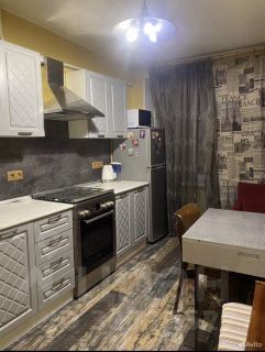 Новые шкафы, холодильник, плита, вытяжка, компьютерные столы, кухонный стол, кресло-шезлонг для балкона) 1-комнатная квартира вторичка на улице Героев Панфиловцев в Москве.
