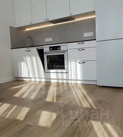 Кухня, со встроенной техникой, продумана до мелочей, установлена бытовая техника: духовой шкаф, варочная панель, посудомоечная машина, вытяжка, подготовлено место под встроенный холодильник.