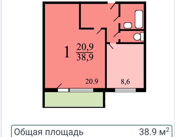 Общая площадь 37,9 м2 (с учетом лоджии 40,9 м2)