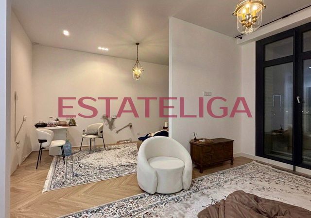Дизайнерский ремонт. Студия имеет полноценную двуспальную кровать с подъемным механизмом. Зона TV оборудована выдвижными ящиками и туалетным столиком, который можно использовать как рабочее место.