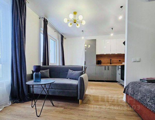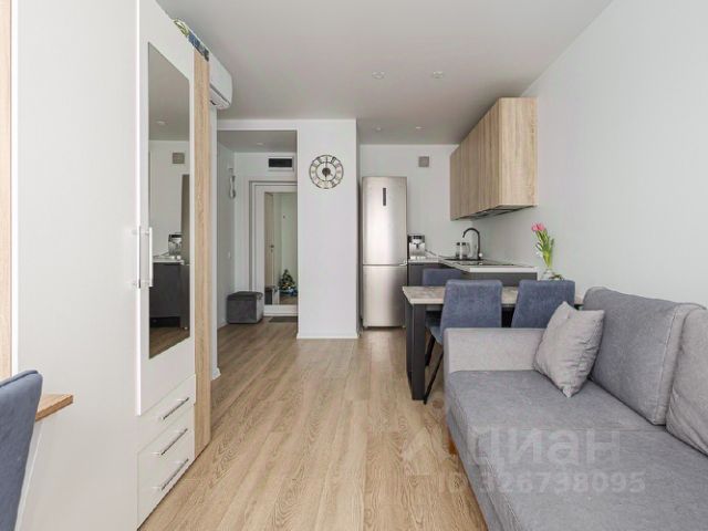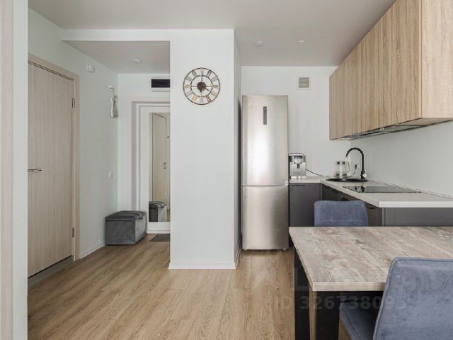 В комнате, кухне-гостиной, прихожей стены оштукатурены и окрашены. В спальне - обои. Пол - кварцвинил, выложен единым полотном. Потолок натяжной со встроенными светильниками. Установлены 2 кондиционера: один в кухне-гостиной, второй в комнате 15 кв.м.