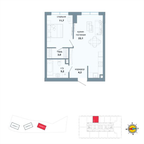 Продаётся 1-комнатная квартира в ЖК "Событие 4" на 17-м этаже. Общая площадь лота составляет 42.10 кв. м. Квартира расположена в жилой квартал "Событие-4", корпус 3 (секция 1)