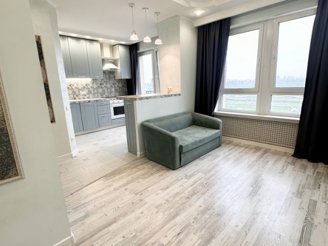 Ремонт произведен по дизайн-проекту с выделением зоны спальни с гардеробной (заполнение гардеробной можно произвести по своим потребностям), зона гостиной оборудована всем необходимым (диван, телевизор). Возможно установить перегородку между зонами (сделана закладная в потолке).