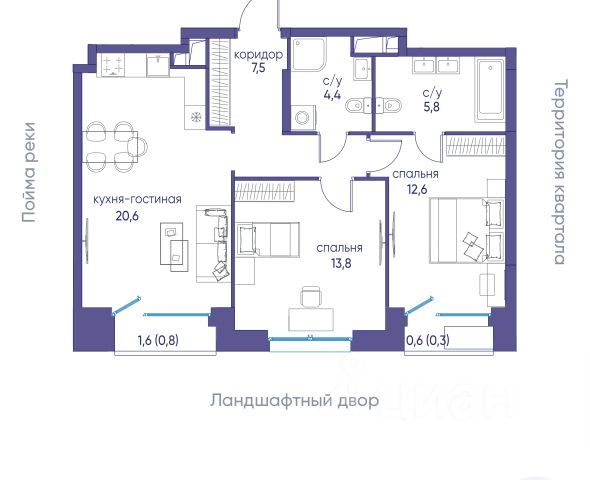 • кухня 9,8 кв. м — просторная, с большим застекленным балконом (отличное место для хранения или чаепитий);