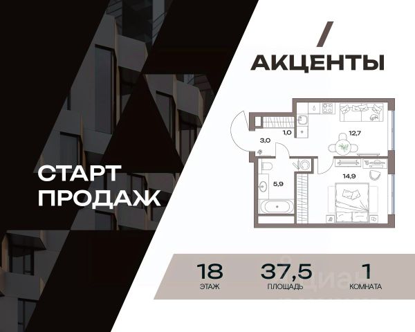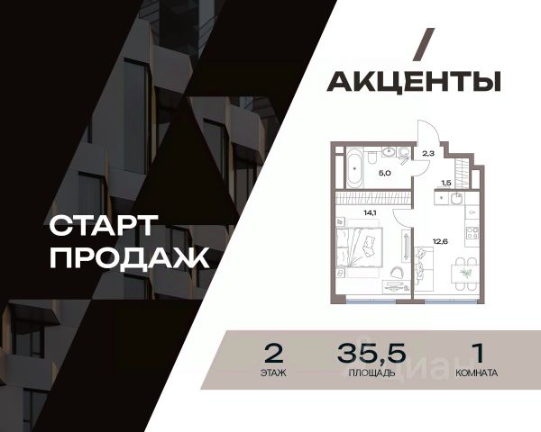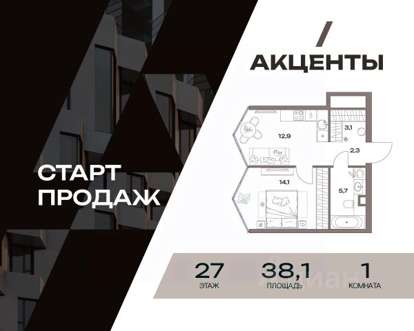 • ✓ В базе Циан 29 1-комнатных квартир в ЖК Акценты в Москве