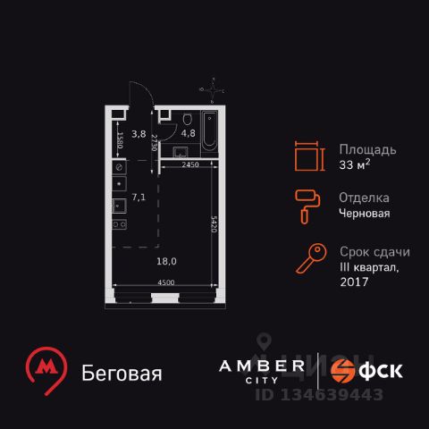 Прямая продажа от застройщика! Успейте забронировать квартиру до повышения стоимости! Жилой Комплекс премиум-класса. Продаётся 1-к квартира номер 6 общей площадью 33.8 кв.м. на 2-м этаже 46 этажного дома. Отделка Whitebox. Цена с учётом скидки! Особенности квартиры: - Линейная планировка - максимальная функциональность и удобство. - Увеличенная ширина окна/окон - больше света и визуального простора. - Увеличенное количество окон - дополнительное освещение и свежий воздух. - Гибкая планировка - создайте пространство по своему вкусу. - Можно оборудовать рабочее место - комфорт для работы и учёбы. - Линейная кухня - функциональность и практичность в одном решении. - Проходная кухня-гостиная - идеальное пространство для общения и готовки. - Ниша под шкаф - компактное и удобное место для вещей. Квартира с предчистовой отделкой (White box). Вам не придется заниматься черновыми и трудоёмкими работы, а чистовую отделку и дизайн - сделайте на свой вкус. Информация о комплексе: Amber City - это не просто квартал. Это место, куда ведут все маршруты, где рождается вдохновение работать и творить, где счастлива семья и жизнь кипит 24/7. Модная архитектура, высокотехнологичные решения и самодостаточная инфраструктура приближают Amber City к лучшим районам Гонконга и Нью-Йорка. Потрясающие виды на Москва-Сити и центр позволяют заряжаться их амбициозностью, не подчиняясь суете. Стремящиеся ввысь небоскребы, благоустроенный парк с зонами отдыха для взрослых и детей, а также многочисленные объекты инфраструктуры возводятся в западной части центра Москвы. Транспортная доступность: Квартал отличается исключительной транспортной доступностью: большая часть значимых мест Москвы находится на расстоянии 15-20 минут. Такое расположение позволит полностью погрузиться в деловую и культурную жизнь столицы и тратить на дорогу только необходимый минимум времени. Общественный транспорт: - Станция метро "Беговая" - 5 минут пешком - Станция "Беговая" (МЦД-1) - 5 минут пешком - Ж/д станция Беговая - 12 минут пешком - Остановка "2-й Хорошёвский проезд" - 3 минуты пешком - Станция метро "Звенигородская" (строящаяся) - 10 минут пешком На автомобиле: - Звенигородское шоссе - 3 минуты - TTK - 5 минут - Хорошёвское шоссе - 9 минут - Садовое кольцо - 12 минут - Красная Пресня - 15 минут - Тверская - 20 минут - Серебряный бор - 8 минут - Строгинский затон - 8 минут - Москва-Сити - 10 минут - Кремль - 20 минут - Аэропорт Шереметьево - 40 минут Внутренняя инфраструктура: Умелая работа над ландшафтом позволила правильно зонировать многоуровневое пространство, общей площадью 6 гектаров, открывая разнообразные возможности для резидентов Amber City и их детей. Главной артерией квартала станет собственный зеленый бульвар. Он начнется с площади у входа на территорию и, объединяя все внутренние пространства, пройдет через ключевые площади с арт-объектами, водными зонами и архитектурными формами. Дополнительные пространства для отдыха будут ра