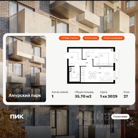 Продаётся 1-комн. квартира площадью 33,4 кв.м на 17 этаже 27 этажного дома (Корпус 4.5, Секция 6) проекта ПИК Амурский парк. Светлый просторный подъезд на уровне земли, функциональная планировка, большие окна, c отделкой. "Амурский парк" — проект "Серии плюс" на востоке Москвы, в 10 минутах пешком от станций метро "Черкизовская" и МЦК "Локомотив". В квартале будет всё для комфортной жизни: квартиры с готовой отделкой и видом на Измайловский парк, уютные дизайнерские лобби, подземный паркинг, торговые галереи на первых этажах и свой детский сад с бассейном. Всего в 8 минутах пешком от квартала "Амурский парк" находится уютный Сиреневый сад, а в 20 минутах — Детский Черкизовский Парк, за 10 минут можно доехать на машине до парка "Лосиный Остров". Квартал от мастерской M.A.M. отражает уникальный архитектурный почерк и органично дополняет городской ландшафт. В основе концепции — принцип сомасштабности человеку, благодаря чему внутри проекта формируется комфортное и гармоничное пространство для жизни. Квартал представлен разновысотными корпусами в минималистичном стиле. Образ строится на сочетании мягких пластичных линий и строгих геометрических форм. Рельефные детали в виде вертикальных металлических ламелей добавляют зданиям объём и глубину, делая архитектуру более выразительной. Цветовая гамма фасадов построена на контрасте терракотового и молочно-серого оттенков, которые создают атмосферу тепла и уюта. Магазины, рестораны и полезные сервисы на первых этажах создадут комфортное пространство для покупок, прогулок и встреч за чашкой кофе. Артикул 1021157 (Застройщик АО "СПЕЦИАЛИЗИРОВАННЫЙ ЗАСТРОЙЩИК "ГЛОРИ"")