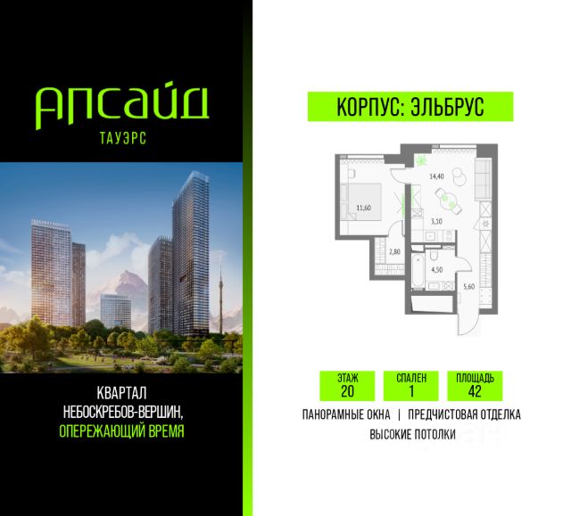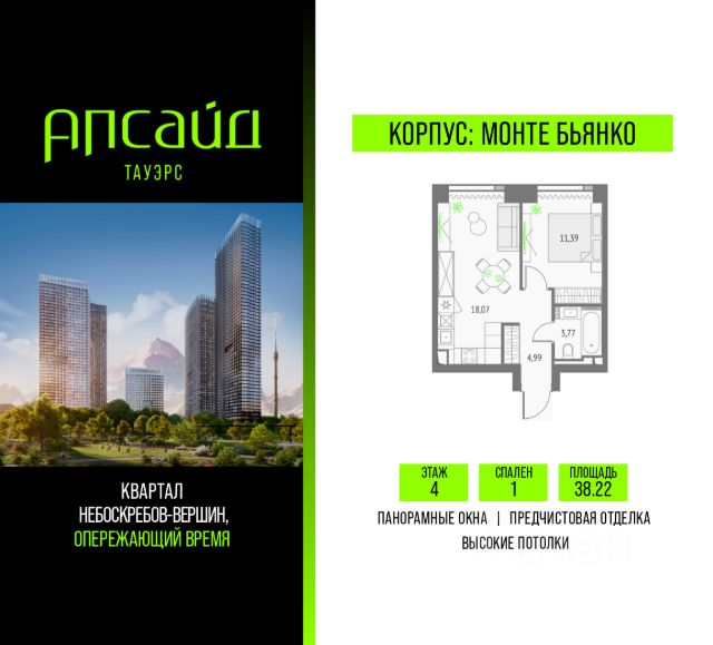 Продаётся 1-комнатная квартира площадью 45.39 кв.м на 6 этаже 47 этажного корпуса Атлас в квартале небоскребов "Апсайд Тауэрс", в квартире предчистовая отделка, c видом на корпус Олимп, внутренний двор. Номер квартиры Б0608. Апсайд Тауэрс - технологичный квартал строится в динамично развивающемся Бутырском районе, в 3 мин. от метро, в 5 мин. от ТТК. На территории 7 га возводится 5 высотных башен от 19 до 58 этажей, названных в честь главных вершин земли. Квартиры с панорамными окнами в пол, высокими потолками и современными инженерными решениями. Благоустроенная зеленая территория включает: приватные дворы, природный комплекс, прогулочный бульвар, ландшафтный парк 2,5 га с сенсорным садом и многофункциональными игровыми и спортивными площадками. В корпусе откроются магазины, кафе и рестораны, а также другие объекты коммерческой инфраструктуры. Большое внимание в проекте уделяется созданию социальной инфраструктуры. Между "Атласом" и "Олимпом" в трехэтажном стилобате разместится уникальное пространство закрытый клуб для жителей квартала Апсайд Клуб площадью 2 000 кв. м. Здесь появится каминный зал с роялем, многофункциональная детская зона c двухуровневым игровым оборудованием для малышей и дошкольников, плей-рум для подростков, домашний кинотеатр, коворкинг, переговорные и лектории. В башнях откроются смотровые террасы для резидентов с панорамными видами на город, парки, Останкинскую башню, ВДНХ, Ботанический сад и Москва-Сити. Покупая квартиру даже самого минимального размера в Апсайд Тауэрс, вы получаете в пользование 2 000 м² бесплатных общественных пространств. В рамках проекта строится государственная школа и детский сад, разместится более 15 000 кв.м. коммерческой инфраструктуры. Насыщенная социальная инфраструктура формирует множество сценариев для жизни на территории квартала. В Апсайд Тауэрс применяются лучшие технологии и практики, чтобы обеспечить высшее качество жизни: Воздух, не уступающий по качеству горному, обеспечит приточно-вытяжная вентиляция. Пятиступенчатая очистка воды с сохранением полезных минералов. Центральное кондиционирование. Внутрипольные конвекторы с естественной конвекцией. Современные системы безопасности и мониторинга микроклимата. Высокоскоростной интернет на всей территории, в квартирах и паркинге. Все места в подземном паркинге оборудованы зарядками для электрокаров. Бутырский район непрерывно развивается и готовится стать новым современным деловым районом Москвы. В рамках программы "Индустриальные кварталы" комплексного развития территории Огородного проезда будут построены современные образовательные и спортивные учреждения, торговые центры, кафе, банки, общественно-деловые здания и другие объекты. В пешей доступности работают школы, детские сады, поликлиники, аптеки, супермаркеты и многое другое. Рядом находится несколько крупных зелёных зон для спокойного отдыха: Парк Останкино, ВДНХ, Парк Сокольники, Гончаровский парк. Время в пути на автомобиле до центра Москвы 15 минут. (Застройщик ООО