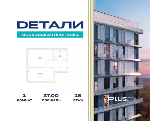 ЖК "Детали" | 1-комнатная квартира, 37.00 м², 18-й этаж. Светлая квартира с панорамным остеклением на высоком этаже. Благодаря продуманной ступенчатой застройке и панорамному остеклению квартиры здесь получают максимум естественного освещения в течение дня. Продуманная планировка создает ощущение простора и уюта. В комплексе — закрытая территория, подземный паркинг и развитая инфраструктура. Легкость передвижений: до метро "Филатов Луг" всего 15 минут на комфортном автобусе, который отправляется от самого дома. В 2027 году в 10 минутах от проекта откроется станция "Десна" Троицкой линии метро. Комфорт и безопасность: - Подземный охраняемый паркинг, оснащенный системой считывания номеров, с доступом на лифте с любого этажа - Наземный паркинг с зарядкой для электрокаров - Безопасная закрытая территория без машин под охраной и видеонаблюдением с системой контроля и управления доступом - Безбарьерная среда с многоуровневым ландшафтным парком, детскими площадками, зонами для отдыха и арт-объектами Сервисы рядом: фитнес, коворкинг, детский клуб Дом расположен в центре поселка Марьино, поселение Филимонковское Новой Москвы. Это место, где рады семьям. Рядом уже работают детский сад и школа, а к 2027 году прямо на территории откроются еще два новых садика В 100 метрах — природный парк "Марьино" и река Незнайка. Этот район признан одним из самых экологически благоприятных в Москве по данным рейтинга EcoStandart Group. На территории ЖК девелопер реализует: - Два собственных детских сада по 250 мест (в 4-м квартале 2026 года, в 1-м квартале 2027 года) - В каждом лобби — общественный санузел, мягкая зона ожидания, отдельные помещения для хранения колясок, велосипедов и самокатов, а также помещения для мойки лап собакам Для покупки вы можете рассмотреть варианты: - Все виды ипотеки, включая семейную и военную - Использование материнского капитала - Trade-in - Индивидуальные скидки от застройщика Свяжитесь с нами, чтобы назначить встречу в офисе продаж. Убедитесь в преимуществах жизни в ЖК "Детали" лично. Наши менеджеры подробно ответят на все ваши вопросы.
