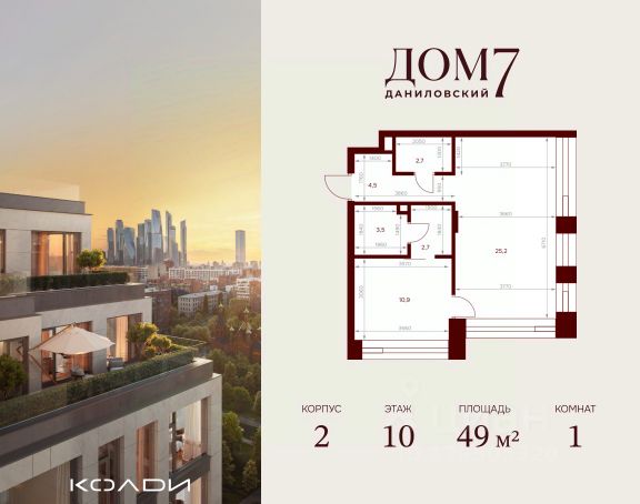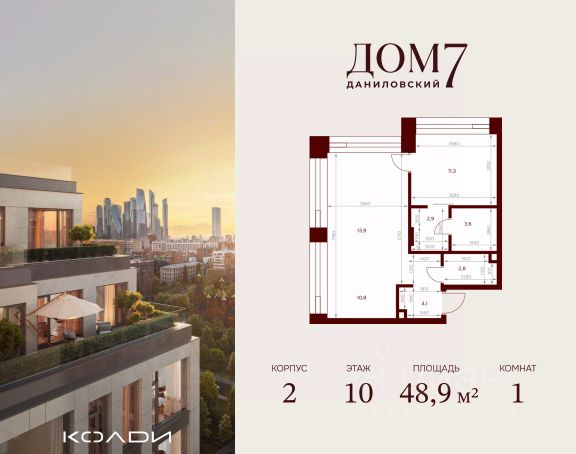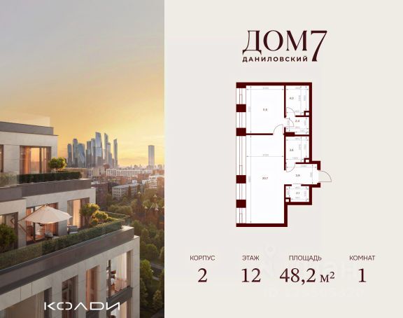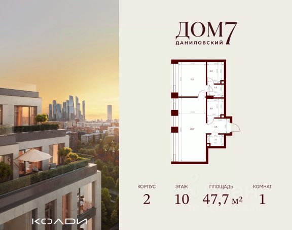 Продается 1-к квартира общей площадью 31.10 кв.м на 13 этаже в жилом квартале премиум-класса "Дом 7 Даниловский". Срок сдачи: 2 квартал 2027 года. Клубный жилой квартал "Дом 7 Даниловский" расположится в тихом уголке "старой Москвы" поблизости от центра города, на улице Серпуховский Вал. Приватный проект вдали от городского шума станет оазисом спокойствия и гармонии среди суеты мегаполиса. Автором архитектурной концепции стало именитое российское бюро "Остоженка". В проекте представлены квартиры как с предчистовой отделкой white box, так и с дизайнерской чистовой отделкой, а также 5 видовых пентхаусов с собственными террасами. На первых этажах расположатся разнообразные сервисы, включая: • Фитнес-зал; • Камерный ресторан; • Детские игровые; • Коворкинг и переговорные; • Лаунж-зоны. На внутренней территории квартала появится всесезонный сад площадью 1 га, разработанный архитектурной дизайн-студией GAFA, где каждый найдет то, что ему по душе: места для занятий спортом и настольным теннисом, детские площадки, уединенные уголки для медитации и спокойного отдыха. Для удобства жителей предусмотрен Консьерж-сервис 24/7. В подземной части дома будет расположен паркинг на 137 машино-мест, а также келлеры. На съезд и выезд будет работать система распознавания номеров. "Дом 7 Даниловский" это жизнь премиум-класса, которой хочется наслаждаться каждый день.