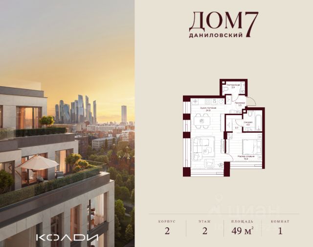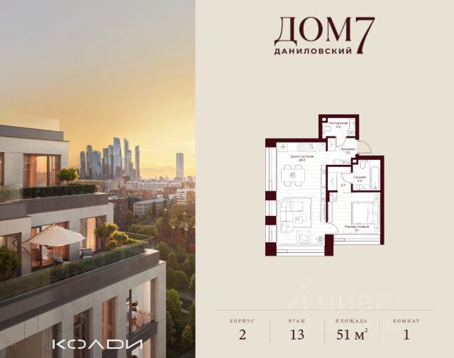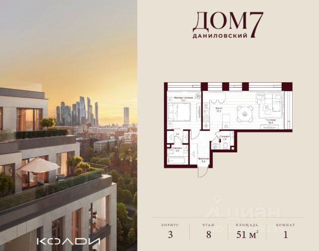 Продается 1-к квартира общей площадью 30.80 кв.м на 2 этаже в жилом квартале премиум-класса "Дом 7 Даниловский". Срок сдачи: 2 квартал 2027 года. Клубный жилой квартал "Дом 7 Даниловский" расположится в тихом уголке "старой Москвы" поблизости от центра города, на улице Серпуховский Вал. Приватный проект вдали от городского шума станет оазисом спокойствия и гармонии среди суеты мегаполиса. Автором архитектурной концепции стало именитое российское бюро "Остоженка". В проекте представлены квартиры как с предчистовой отделкой white box, так и с дизайнерской чистовой отделкой, а также 5 видовых пентхаусов с собственными террасами. На первых этажах расположатся разнообразные сервисы, включая: • Фитнес-зал; • Камерный ресторан; • Детские игровые; • Коворкинг и переговорные; • Лаунж-зоны. На внутренней территории квартала появится всесезонный сад площадью 1 га, разработанный архитектурной дизайн-студией GAFA, где каждый найдет то, что ему по душе: места для занятий спортом и настольным теннисом, детские площадки, уединенные уголки для медитации и спокойного отдыха. Для удобства жителей предусмотрен Консьерж-сервис 24/7. В подземной части дома будет расположен паркинг на 137 машино-мест, а также келлеры. На съезд и выезд будет работать система распознавания номеров. "Дом 7 Даниловский" это жизнь премиум-класса, которой хочется наслаждаться каждый день.