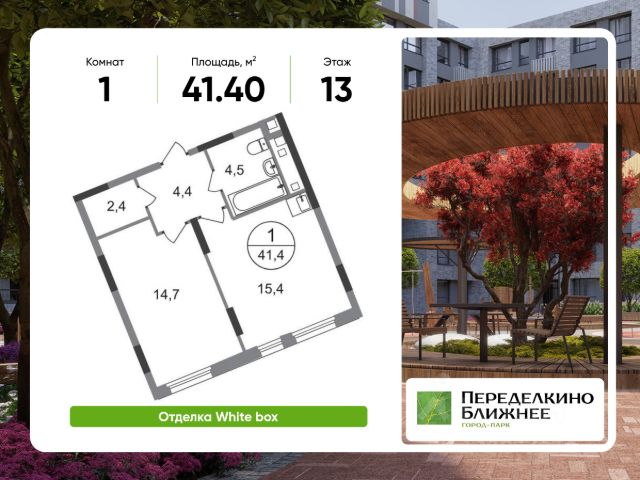 Продается однокомнатная квартира в городе-парке "Переделкино Ближнее". Общая площадь квартиры - 35,8 кв. м, этаж 5 из 17. Срок сдачи - 3 квартал 2026 года. Тип дома - монолитный. ТОЛЬКО ДО 28 ФЕВРАЛЯ: - Рассрочка до 18 месяцев с первоначальным взносом от 10% - Ежемесячный платеж от 50 000 руб. *подробную информацию по скидкам и акциям уточняйте в отделе продаж. Город-парк "Переделкино Ближнее" расположен в 8 км от МКАД по Боровскому шоссе. ТРАНСПОРТНАЯ ДОСТУПНОСТЬ: - 10 минут пешком до МЦД-4 "Мичуринец" - 15 минут пешком до станции метро "Рассказовка" Солнцевской линии - 10 минут на машине до станции метро "Филатов Луг" Сокольнической линии - 30 минут до центра Москвы - Прямой выезд на дорогу Солнцево-Бутово-Варшавское шоссе, минуя жилую застройку всего ЖК БЛАГОУСТРОЙСТВО: 18 фаза строительства уникальна своим расположением - в шаговой доступности парк на Лукинской улицы, река Алёшинка. На территории 18 фазы строительства будут построены 2 монолитных жилых корпуса повышенного комфорта разной этажности 7, 17 этажей. А также многоуровневый паркинг на 300 м/мест. Вход в жилую часть корпусов каждой секции осуществляется с двух сторон - с наружного контура жилого дома и со стороны дворового пространства, предусмотрен безбарьерный доступ. ВНУТРЕННЯЯ ИНФРАСТРУКТУРА: В рамках данной фазы, для жителей предусмотрено создание пространства, свободного от машин - благоустроенные огороженные дворы с современными детскими и спортивными площадками, разделенными на зоны по возрастам. На территории проекта есть все необходимые объекты социальной и бытовой инфраструктуры: детские сады, школы, магазины, паркинги, аптеки, поликлиники, пожарная часть и др. АВТОРСКИЙ ДИЗАЙН: Современный монолитный дом переменной этажности 7 и 17 этажей. На фасаде предусмотрены корзины для установки кондиционеров. Входные группы домов выполнены по авторскому дизайну. Колясочные располагаются при входе, велопарковка на -1 этаже. 1-комнатная квартира 1-комнатных квартир в Город-парк Переделкино Ближнее в Москве.