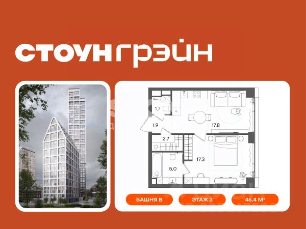 1-комнатные квартиры в жилом комплексе СТОУН ГрэйнЖК «СТОУН Грэйн»