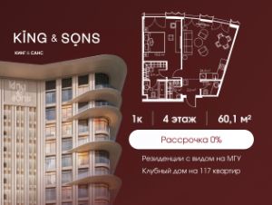 КИНГ энд САНС это клубный дом на 117 резиденций премиум-класса, расположенный на престижной и исторической улице Мосфильмовская. Из большинства квартир открываются панорамные виды на МГУ, "Москву-Сити", особняки посольств и парки. Это место для тех, кто не хочет выбирать между комфортом мегаполиса и уединением на природе. Проект разработан международным архитектурным бюро, которое входит в ТОП-2 в мире. Фасады из натурального камня, мягкие формы здания, максимально открытое остекление, окна в пол — все это делает облик здания выразительным и уникальным. В проекте предусмотрено 70% квартир с террасами. Потолки от 3,2 до 4,7 м. Паркинг на 110 машиномест. Для будущих резидентов продуманы разнообразные общественные пространства зимний сад в лобби первого этажа, секретный сад с зоной открытого огня, лаундж-зона с кинотеатром на крыше, собственный спортзал, зоны для занятий йогой и медитацией. КИНГ энд САНС это фамильная недвижимость, которую с гордостью передают по наследству