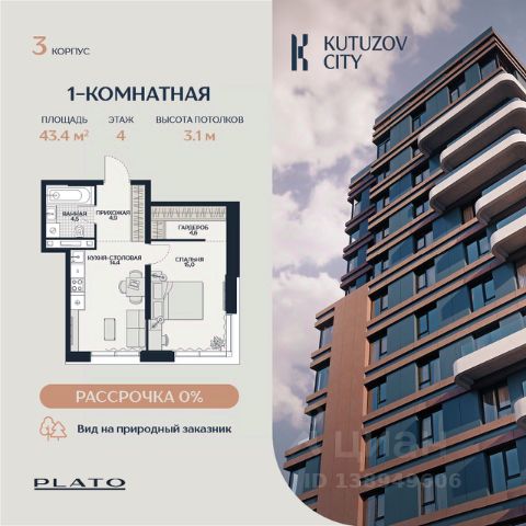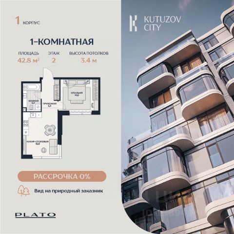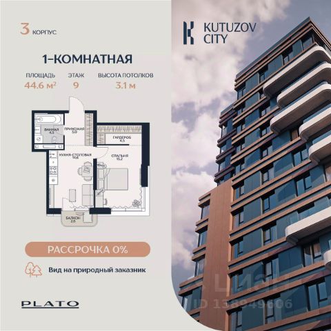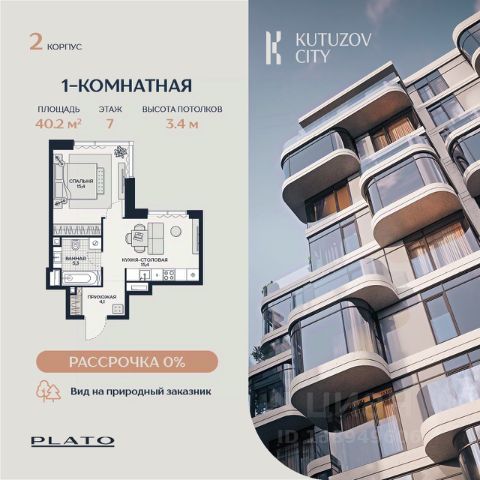 Продаётся светлая квартира площадью 37,4 м² в башне "Созидание" клубного дома "Кутузов Сити". Планировка квартиры продумана до мелочей и позволяет создать комфортное пространство для жизни. Просторная кухня-гостиная станет идеальным местом для семейных ужинов и приёма гостей. Изолированная спальня обеспечивает уединённое пространство для отдыха. Просторная ванная комната позволяет разместить как душевую кабину, так и большую ванную. Большие окна наполняют квартиру естественным светом и делают интерьер стильным. Высокие потолки придают пространству ощущение свободы и лёгкости. Продуманная планировка позволяет эффективно использовать каждый квадратный метр. О проекте: "Кутузов Сити" — клубный дом на 220 квартир, разработанный совместно с бюро Atrium и Oleg Klodt Architecture & Design. Проект строится в престижном Западном административном округе Москвы, всего в нескольких минутах ходьбы от Кутузовского проспекта. Закрытая территория, приватный двор, подземный паркинг и стильные лобби создают атмосферу комфорта и безопасности. В двух шагах от дома находится крупнейшая природная территория Москвы — природный заказник "Долина реки Сетунь". Камерная застройка и развитая инфраструктура делают "Кутузов Сити" отличным выбором для тех, кто ценит качество жизни и близость к природе. (Лот: 177)