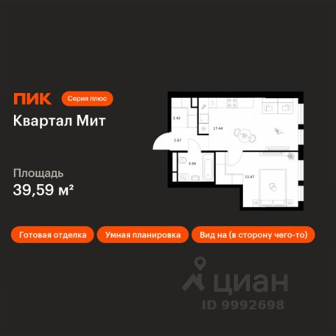 Новостройка! Продается 1-комн. кв-ра площадью 41,17 кв.м, (Корпус 3.4, Секция 4) 9 этаж 32-этажного дома в Квартал Мит от ПИК. "Квартал Мит" строится в экологически чистом районе Митино, где по соседству расположен большой лесопарк, а с двух сторон протекают реки Сходня и Журавка. Для семей с детьми здесь появится школа и два детских сада. В 20 минутах пешком находится станция метро "Пятницкое шоссе", а за 10 минут на автомобиле можно доехать до МКАД. Архитектура от бюро Slava+ Концепция квартала сочетает эстетику и функциональность. Башня-доминанта цвета красной охры и разновысотные корпуса терракотового, белого и графитового оттенков формируют узнаваемый силуэт современного городского пространства. Просторные террасы, разнообразные балконы и окна в пол придают облику динамичность и дарят квартирам уютные места для отдыха. Первые этажи с панорамными окнами создают сцену для яркой городской жизни. Здесь появятся пространства для прогулок, летние террасы, рестораны и коммерческие помещения. Комфорт "Серии плюс" При входе в дом жителей встретят светлые просторные лобби с высокими потолками — попасть сюда можно как со стороны улицы, так и со двора. В лобби будет зона ожидания, велосипедная и колясочная. Быстро и с комфортом подняться на нужный этаж помогут бесшумные скоростные лифты. На подземном этаже появится паркинг и индивидуальные кладовые, где удобно хранить сезонные вещи. #d17.02# Артикул 1034752 (Застройщик АО СЗ "ПФК")