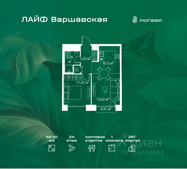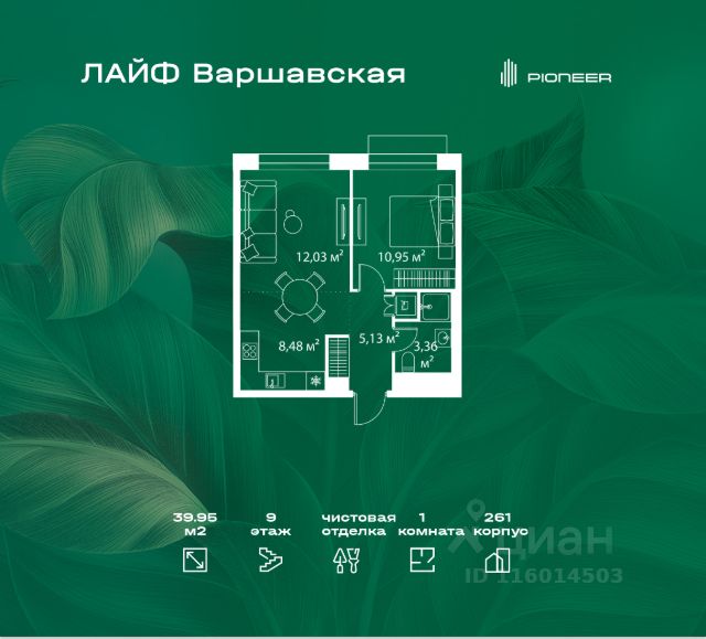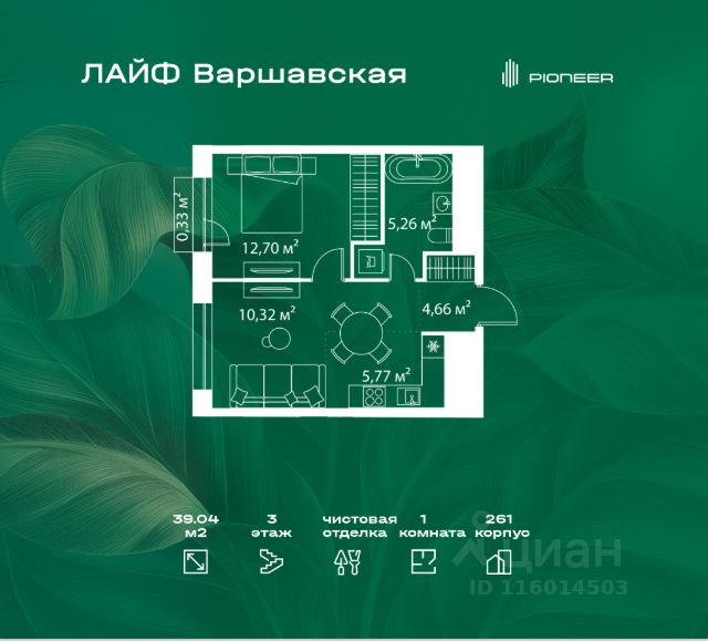 В районе Москворечье-Сабурово продается 1-комнатная квартира площадью 38.65 м². Она расположена на 2 этаже в 261 корпусе нового жилого квартала Лайф Варшавская. Площадь комнат: гостиная — 9,45 м² спальня — 12,91 м² кухня — 5,4 м² ванная — 5,07 м² В Лайф Варшавская мы создали идеальные условия для жизни молодых людей и семей с детьми, тинейджеров и спортсменов, домохозяек и бизнесменов. Жилой квартал Лайф Варшавская удачно расположен: 5 минут до станции "Варшавская" 10 минут до станции "Каширская" 18-25 минут до парка-усадьбы "Коломенское", Битцевского леса и музея-заповедника "Царицыно" Богатая инфраструктура — это визитная карточка проекта. На территории работают детский сад на 160 мест и школа на 900 мест с IT-полигоном и мультифункциональным спортивным стадионом. В квартале разместились пешеходный бульвар, игровой плейхаб "Змейка", спортивный кластер с полями для футбола и волейбола, площадка для выгула животных. На первых этажах жилых домов открыты магазины, кафе и рестораны, салоны красоты, арт-галереи, сервисы бытовых услуг, медицинские центры. Концепция жилого квартала создана ведущими архитектурными бюро. Структуры малоэтажных кварталов дополняются высотными башнями-доминантами. Такой тип застройки позволил сформировать освещенную приватную территорию.
