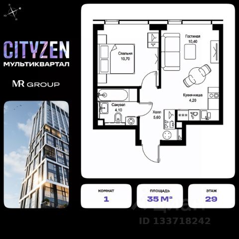 1-комнатные квартиры в жилом комплексе Мультиквартал CITYZENЖК «Мультиквартал CITYZEN»