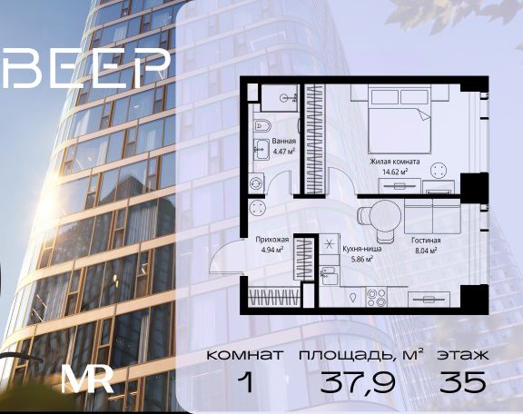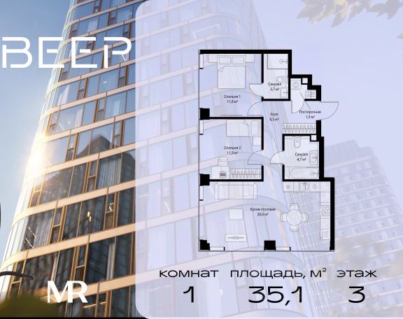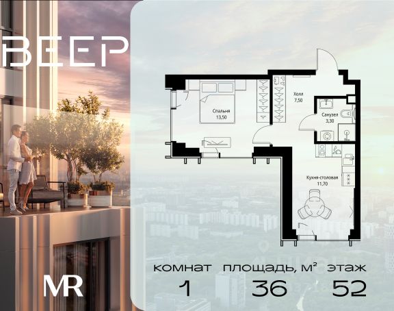 Старт продаж новой очереди! Продаётся 1-комнатная квартира общей площадью 35.06 м² без отделки в ЖК Веер на 3-м этаже 70 этажного дома. ВЕЕР.2 — это вторая очередь жилого комплекса бизнес-класса в престижном ЗАО, где реализована концепция 15-минутного города. Всё, что нужно для комфортной жизни, работы и отдыха, находится в шаговой доступности: офисный и спортивный кластеры, государственная рейтинговая школа 1329 и детский сад, центры творчества, ресторанный бульвар, фитнес и спа-центр с 25-метровым бассейном. • Архитектура и лобби ВЕЕР.2 — это ансамбль из четырёх стеклянных башен от бюро Kleinewelt Architekten, объединённых стилобатом с благоустроенным закрытым двором без машин. Моллированные окна обеспечивают максимум естественного света и ощущение простора. В каждой башне — роскошное лобби от испанского бюро Jaime Beriestain Studio: высокие потолки, обилие живых деревьев, природные материалы и палитра природных оттенков создают атмосферу Люксембургского сада прямо у вас дома. Двухуровневое гранд-лобби с коворкингом и библиотекой станет центром встреч с друзьями и соседями. В каждом лобби предусмотрены лапомойки и просторные колясочные. • Двор и инфраструктура Двор ВЕЕР.2 — это настоящий оазис северной природы: тактильная тропа, сад камней, асимметричные холмы, хвойные островки и павильон для отдыха. Для работы на свежем воздухе — бизнес-гарден, для занятий спортом — пространство для йоги и сайкла. Здесь всё продумано для поддержания гармонии в суете жизни. • Спорт и досуг Трёхуровневый фитнес и СПА-центр на 4000 кв.м с 25-метровым бассейном под прозрачной крышей, кардио- и силовыми залами, а также пространством для групповых занятий — всё это рядом с домом. • Планировки и технологии В комплексе представлены продуманные планировки: панорамные кухни-гостиные, гардеробные даже в небольших лотах, разделение на гостевую и приватную зоны, кладовые при кухнях. Малоэтажные уютные секции с 25 квартирами на этаже и с эксплуатируемой кровлей подойдут тем, кто ищет уединения. ВЕЕР.2 оснащён умной инженерией: скоростные лифты премиум-класса Sword, система считывания номеров в паркинге, гостевой Wi-Fi, приточно-вытяжная вентиляция, внутрипольные конвекторы. Безопасность обеспечивает отдельный вход для курьеров и современные системы охраны. • Парковка и сервис Для жителей предусмотрен удобный двухуровневый паркинг на 736 машиномест с прямым доступом из лобби, зарядками для электромобилей, зонами разгрузки, кладовыми и велопарковками.